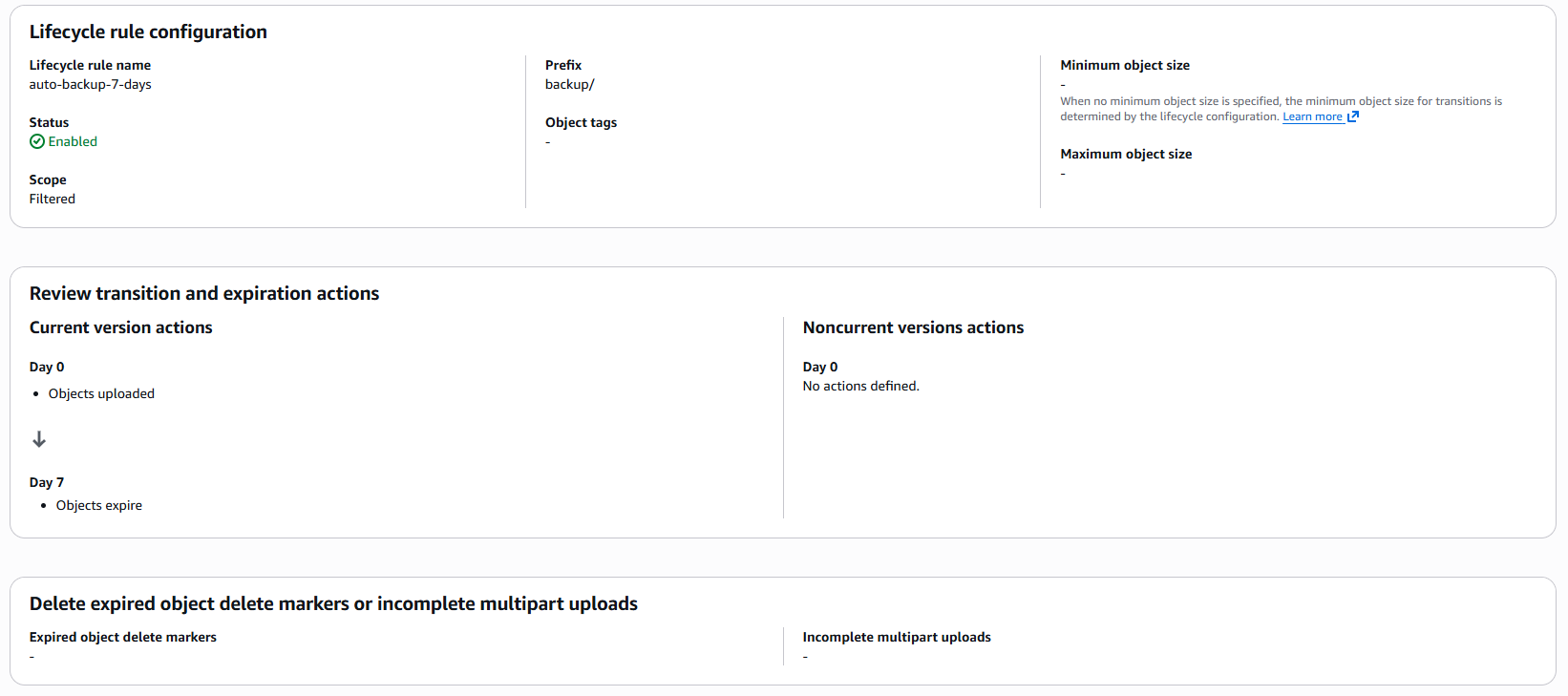 → Hiệu quả: Backup của ngày hôm kia sẽ tự chuyển vào Deep Archive.